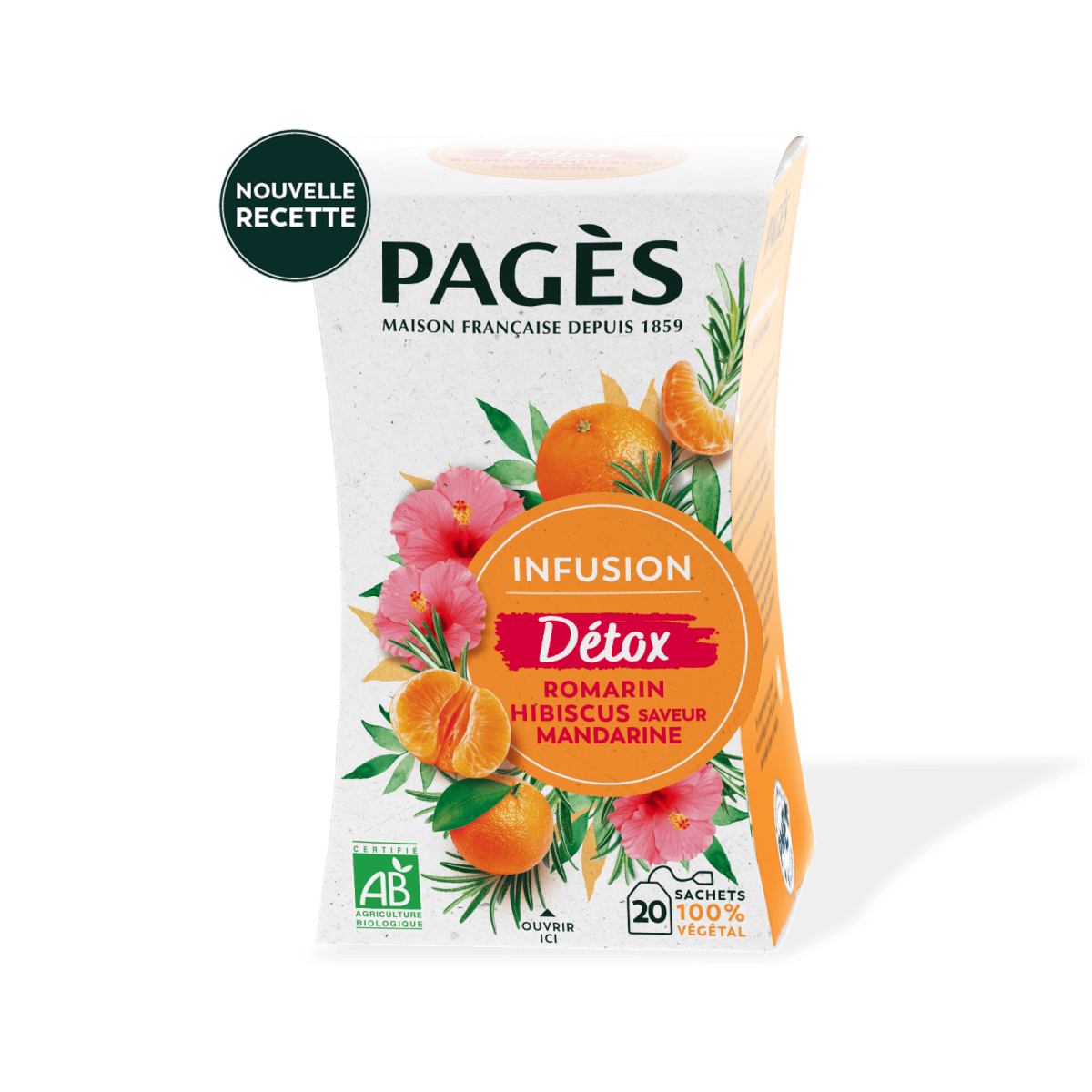 The association of Rosemary, Lemongrass, Mint with the flavor of Mandarin reveals a cocktail as original as it is gourmet. Renowned for facilitating elimination functions, Ash leaves set the tone for this Bio Detox infusion. This recipe is the result of a fair balance between plants and aroma.