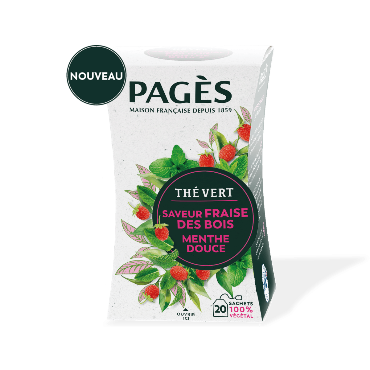 Le thé vert saveur Fraise des bois Menthe douce de Pagès est une recette qui allie la douceur subtilement boisée de la Fraise des bois avec les notes fraiches de la Menthe douce.