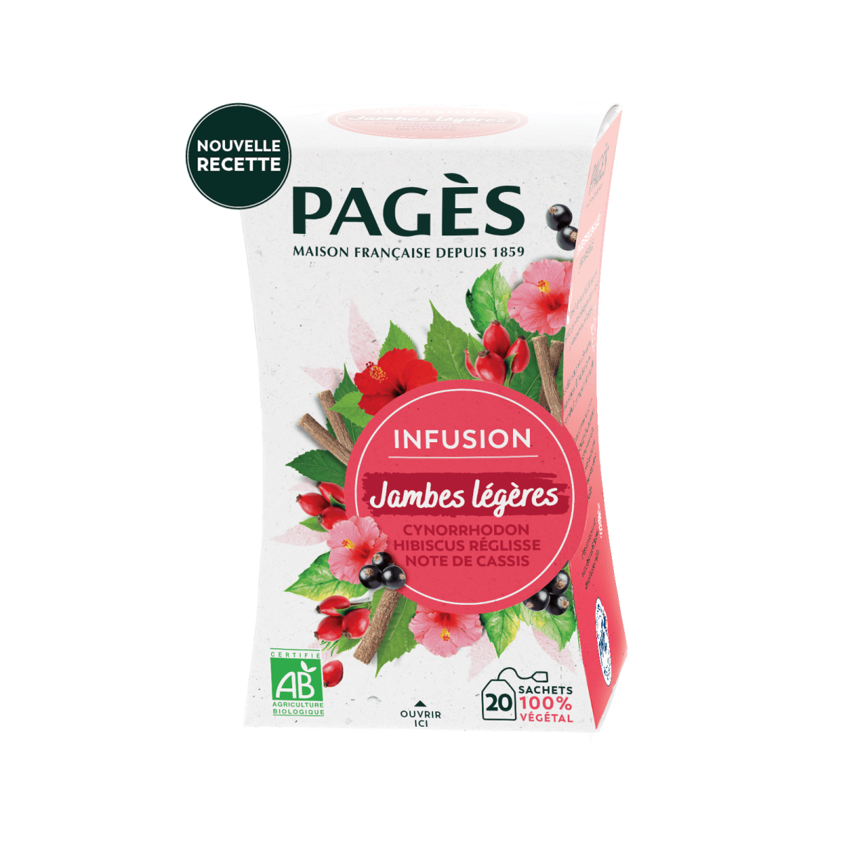 L’infusion Jambes Légères Bio de Pagès a été élaborée dans la pure tradition herboriste : Hibiscus, connu pour favoriser la sensation de jambes légères, Cynorrhodon, Réglisse... Notre recette, créative et généreuse, est le résultat d’un savant dosage de plantes, pensé pour votre bien-être. Le arômes naturels de Cassis et de Framboise apportent avec subtilité une touche d’originalité à cette infusion.